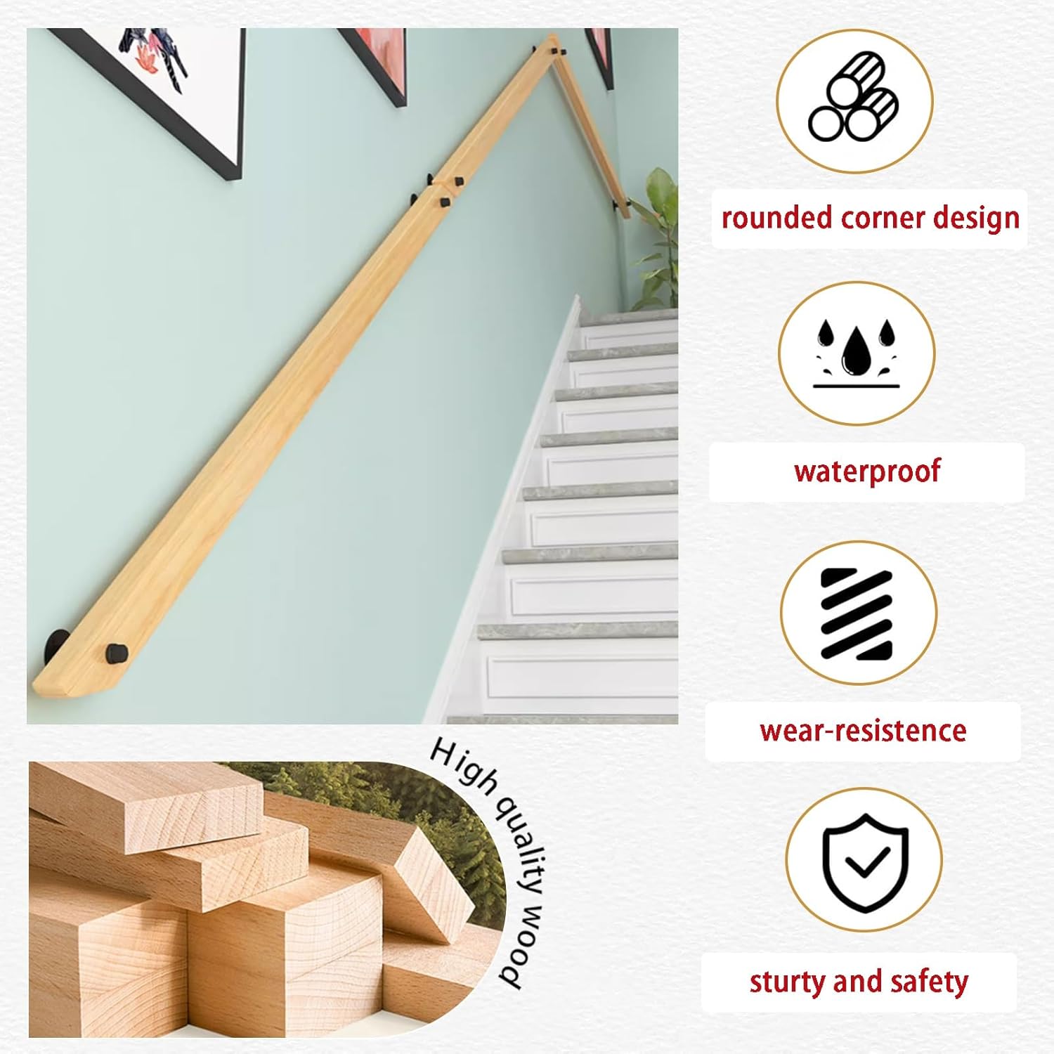 手すり 屋内階段用木製手すり1~15フィートの滑り止め安全階段手すり階段手すりデッキロフト用階段グラブバー壁取り付け手すり手すりサポ 手すり 非道1フィート~20フィート 滑り止め階段手すり 家庭 庭 廊下 ロフト デッキ手すり。
