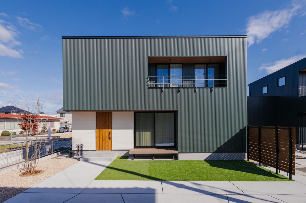 緑色のガルバリウム鋼板がポイントのカッコいいお家愛知・東海エリアのローコスト注文住宅・新築の住まいカナルホーム。