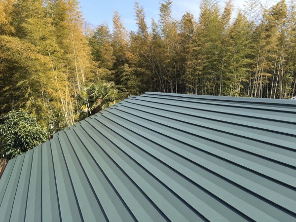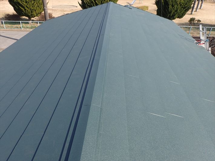 輝くモスグリーンの屋根、ガルバリウム鋼板の屋根に葺き替えました塗替えかがやき。