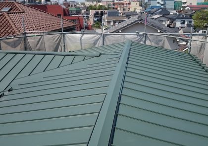 大阪府東大阪市 T様邸 屋根葺き替え工事 参考価格:97万円立平葺き 施工屋根葺き替え、カバー工法施工事例堺市の屋根 修理リフォームや雨漏り工事、瓦の葺き替え桜建装。
