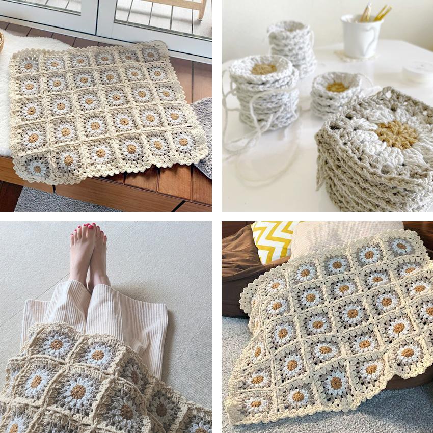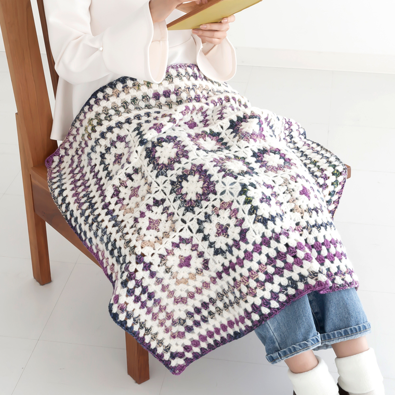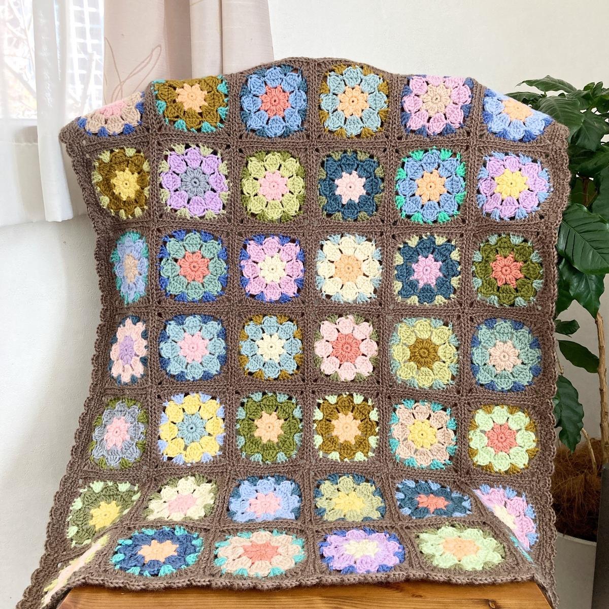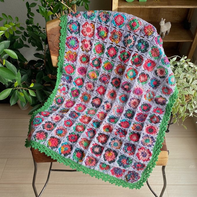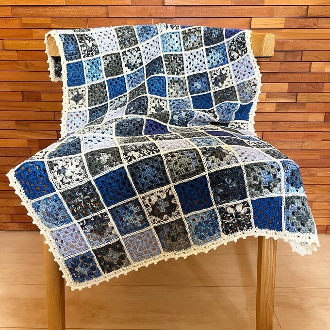 1手編みブランケット ひざ掛け グラニースクエア グラニースクエア ブランケットのふち編み用毛糸セット。