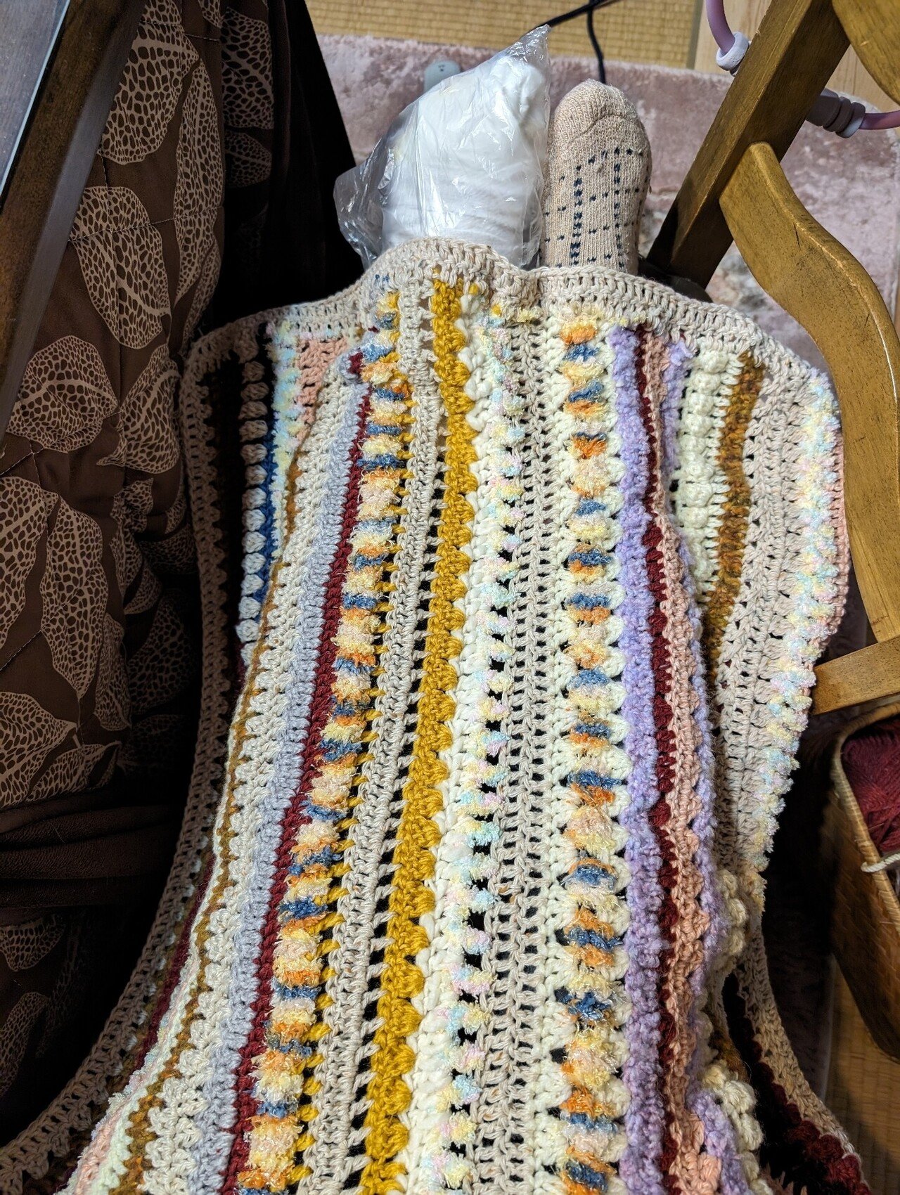 大きなブランケット。2年前の作品。 余りの毛糸でひたすら編み進め。 130×170ほどのサイズに。アメリカのおばあちゃんの家🏠をイメージして編みました。かぎ針編み手編みブランケット色遊び手編みcrochetcrochetingacrochetstitchCrochetblanket。