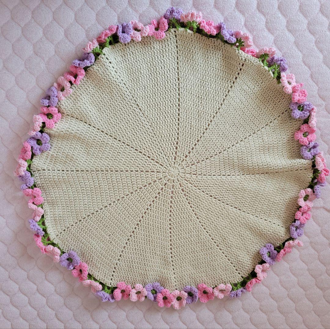 送料込 手編みのブランケット 花モチーフ モチーフ編み 毛糸 膝掛け カラフル 大人可愛い。