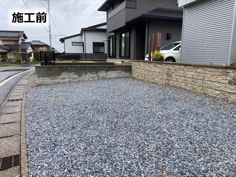 駐車場の雑草対策事例 砂利敷き駐車場から手入れ不要のスタンプコンクリート駐車場へ木更津市 - スタンプコンクリートなら千葉県茂原市の優侑テラス。