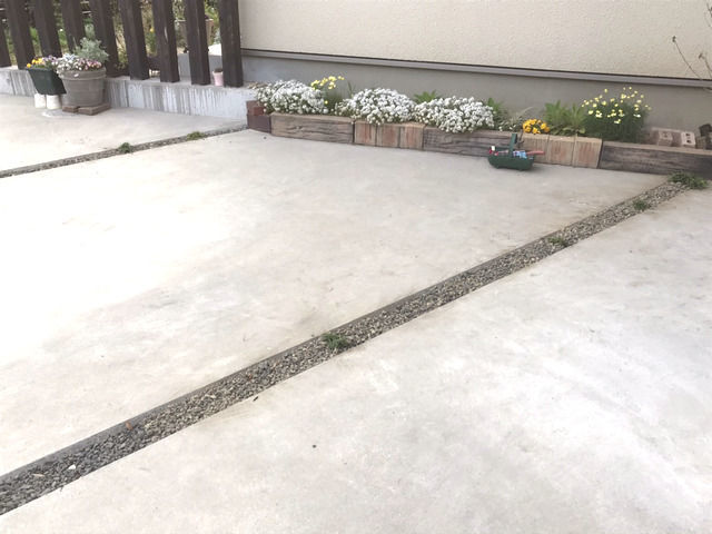 目地にまでこだわったおしゃれな土間コンクリートの駐車場デザイン集アイディアいっぱいお庭ブログ。