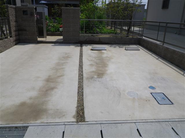 駐車場の目地の砂利が汚れてきたない姫路市の外構・エクステリア・お庭のことなら、サンガーデンへ。
