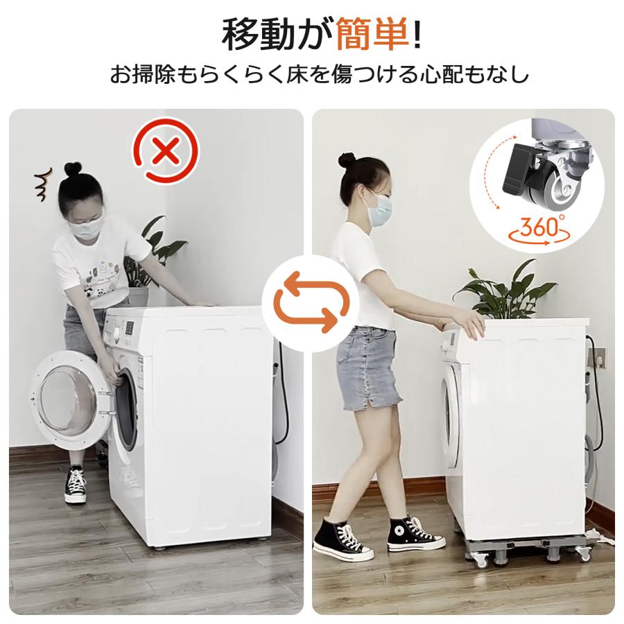 洗濯機置き台 キャスター付き ドラム式対応 耐荷重150kg 防振・キズ防止パッド付き 44~69cm 洗濯機置台 洗濯台 洗濯置き台 冷蔵庫 下掃除 冷蔵庫台 ストッパー付き 一人暮らし 新生活 SunRuck -壱番館STORE - プレゼント&ギフトのギフトモール。