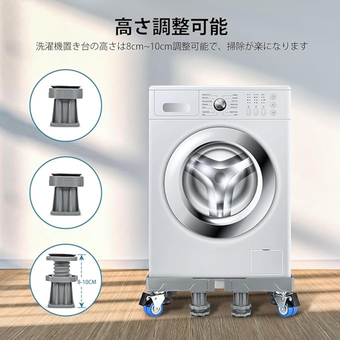 洗濯機台 キャスター付き 幅 奥行42x65 耐荷重500kg 高さ調整可能洗濯機置き台 洗濯機 置き台 – 快適収納堂。