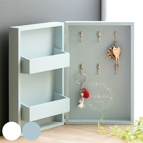 キーボックス アムール 6個吊 鍵 収納 折りたたみ2段 キーフック 置き型 玄関 鍵掛け 鍵収納 小物収納 小物入れ 木製 鍵置き 玄関収納置き場所 はんこ ハンコ ホルダー 白 ホワイト ブルー 天然木 おしゃれホワイトホワイト : リビングート ANA。