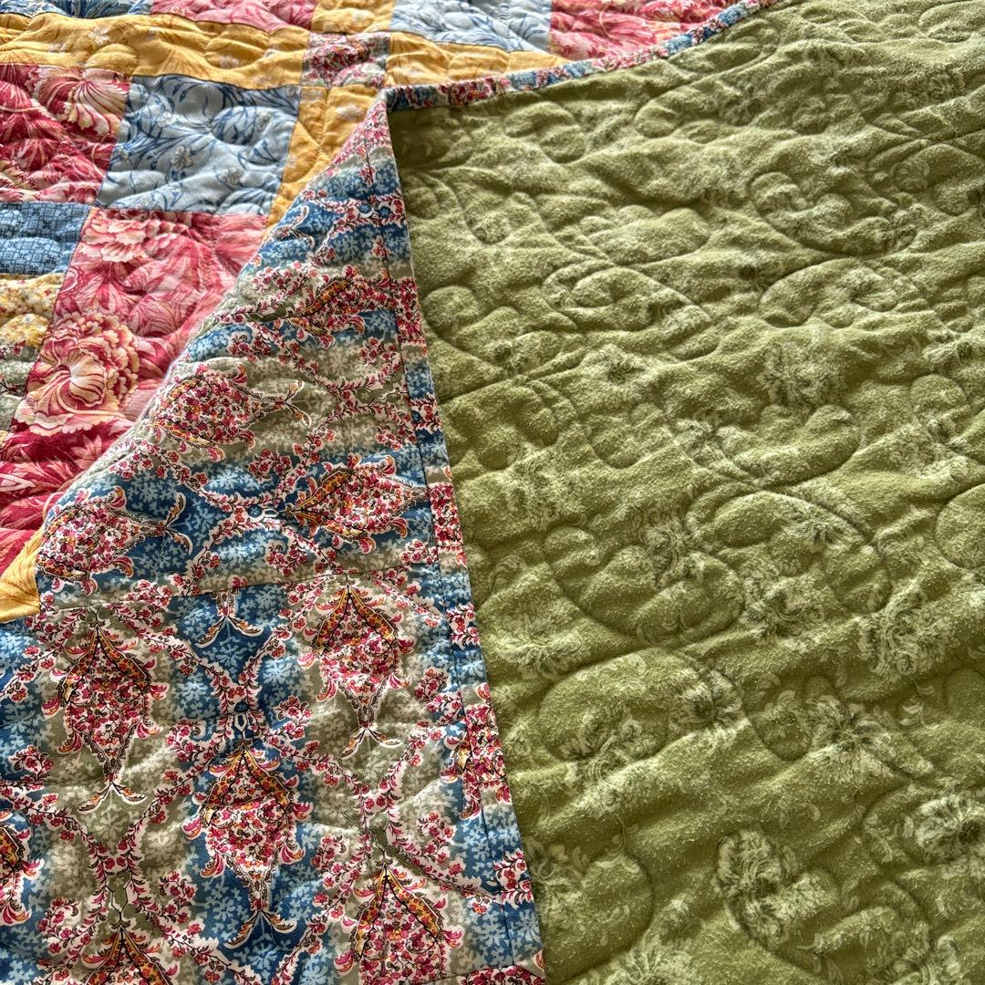 パッチワークのカラフルベッドカバー 中古良品 ハンドメイド パッチワークキルト ベッドカバー手作りの。
