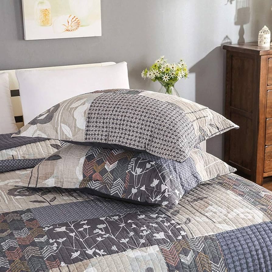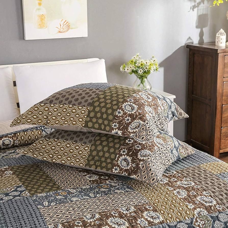 キルティングコットンベッドカバー シーツセット パッチワークカバーセット 掛け布団カバー アメリカンカバー ファッショナブル 寝具セット 3個Amazonベッドカバーキット 伝統的なコットンパッチワークキルトセット3ピースファッションクリエイティブな軽量パッチ。
