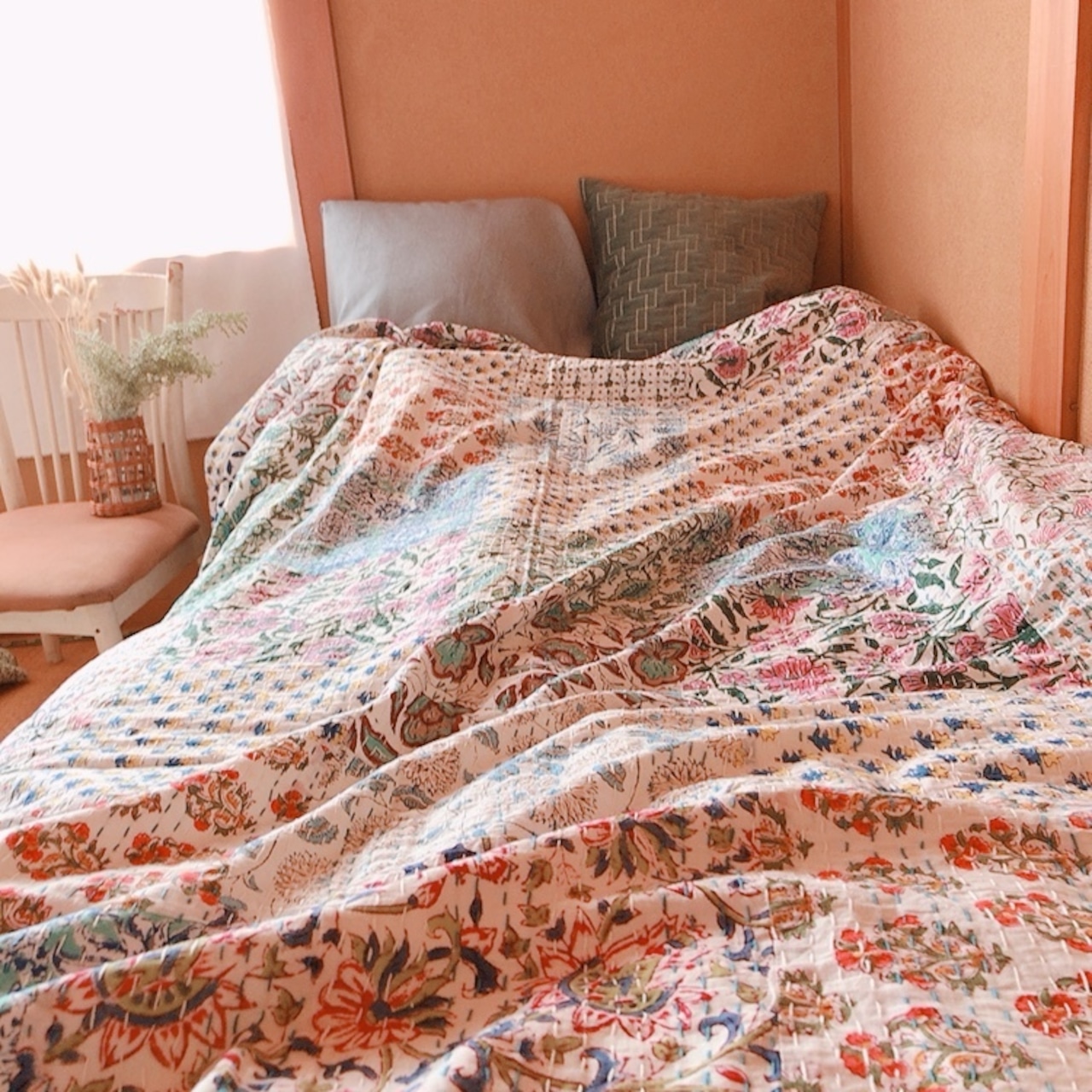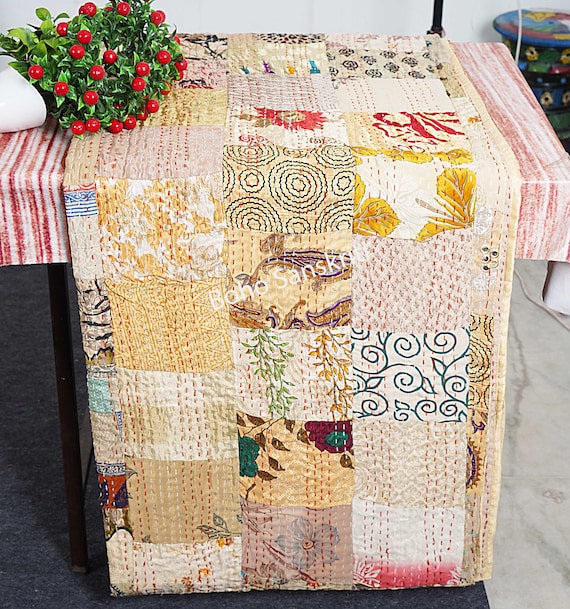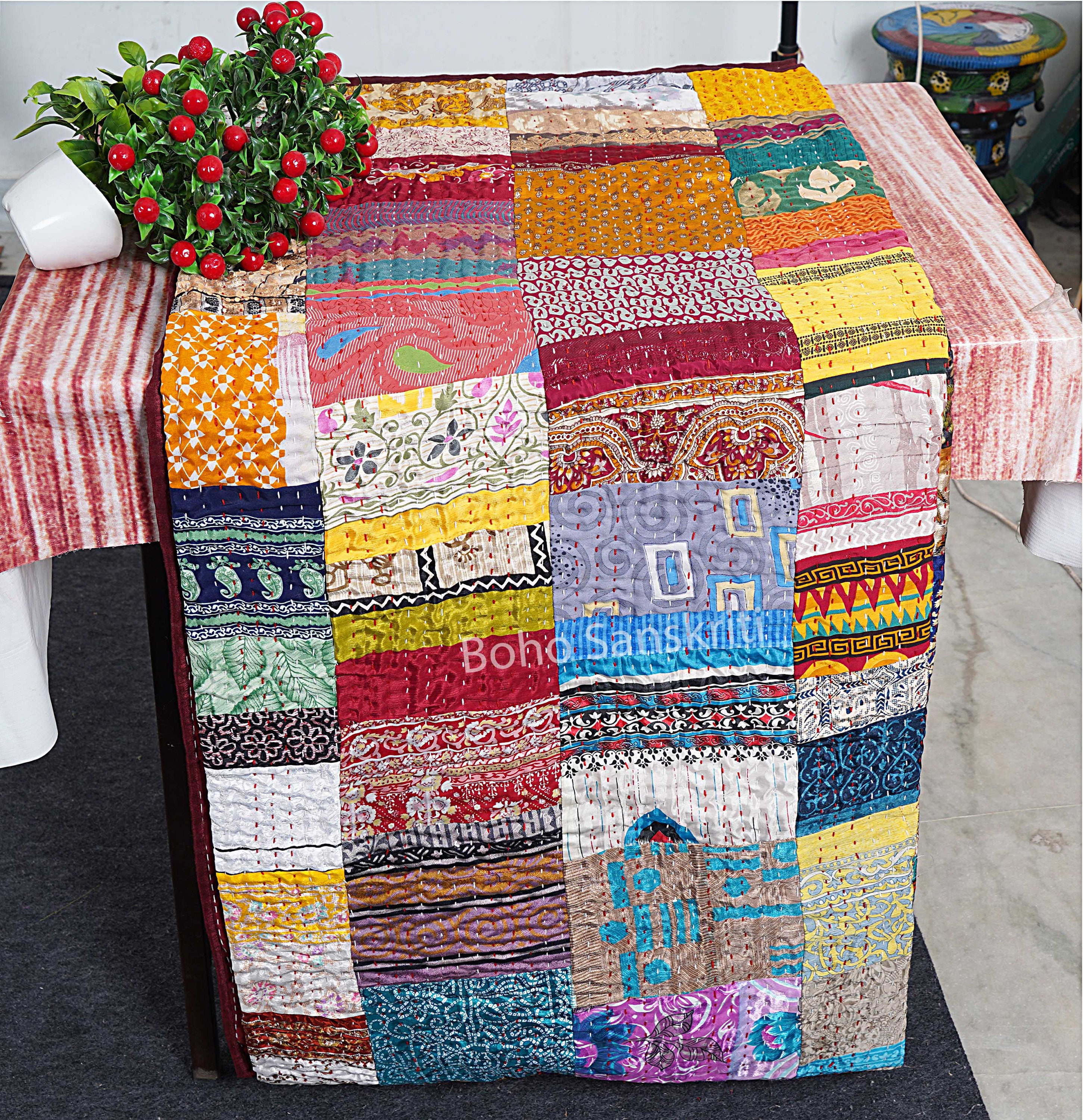 ヴィンテージハンドメイドパッチワークキルト、インドのボヘミアンキルト、寝具、カンタベッドカバー、ヴィンテージパッチスローキルティングキルト販売中全サイズ- Etsy 日本。