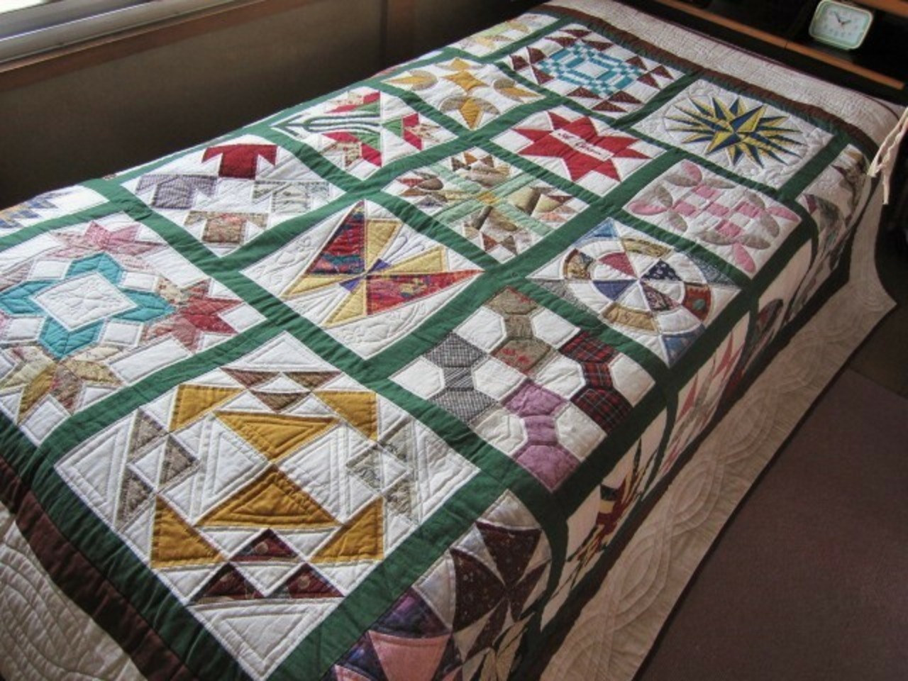 完成品☆パッチワーク☆サンプラーのベッドカバー☆送料無料アトリエROSE。