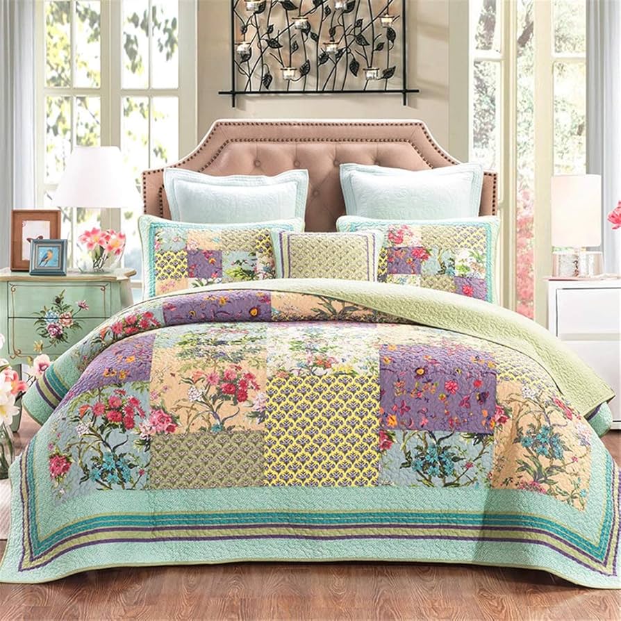Amazonベッドカバーキット 伝統的なコットンパッチワーク キルトセット快適な家の装飾デザイン暖かく快適なファッションプリント軽量キルトセットスリーピース軽量通気性パッチワークキルトセットは、任意の家やコテージに個性を追加するように設計ベッドセットColor。