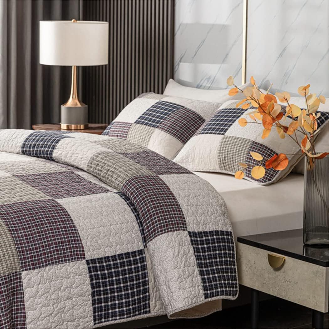 コットンキルトセットクイーンサイズ、パッチワークキルトセット、リバーシブルベッドカバー掛け布団、3ピース寝具セット、オールシーズン用 Amazon ベッドカバーキット 伝統的なコットンパッチワークキルト寝具セット3ピース創造的な軽量プリントキルトカバーベッド。