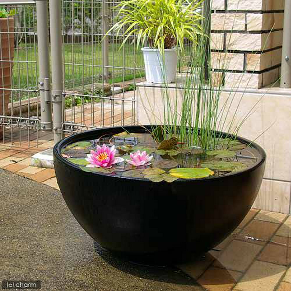睡蓮鉢 睡蓮鉢 メダカ鉢凛 RIN 丸型 ブラック M 睡蓮 スイレン蓮 ハスメダカ 金魚用チャーム。