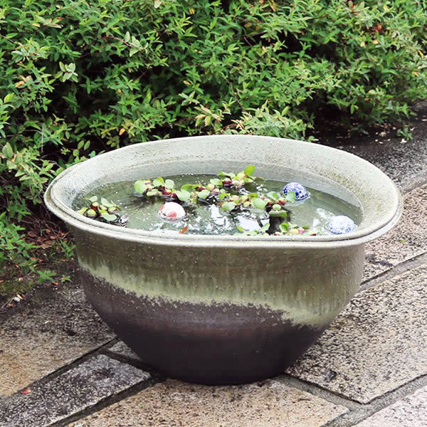あす楽対応信楽焼 睡蓮鉢 メダカ鉢 緑窯変 手づくり 丸水鉢 8号送料無料水鉢 メダカ鉢 スイレン鉢 ビオトープ おしゃれ 屋外 メダカ水槽当園オリジナル の評判・口コミ野に行く。