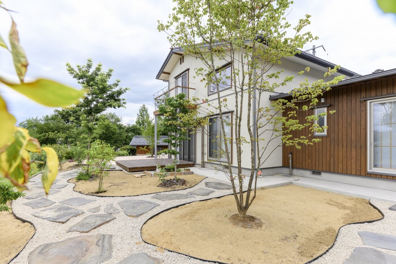宅地の高低差を見事に解決した庭、外構 小諸市安土倍組デザイナーズガーデン。