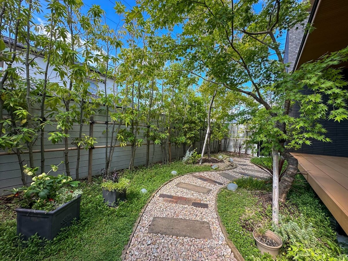 奥へと広がる庭-石丸邸横浜エクステリア工事グレースランド。