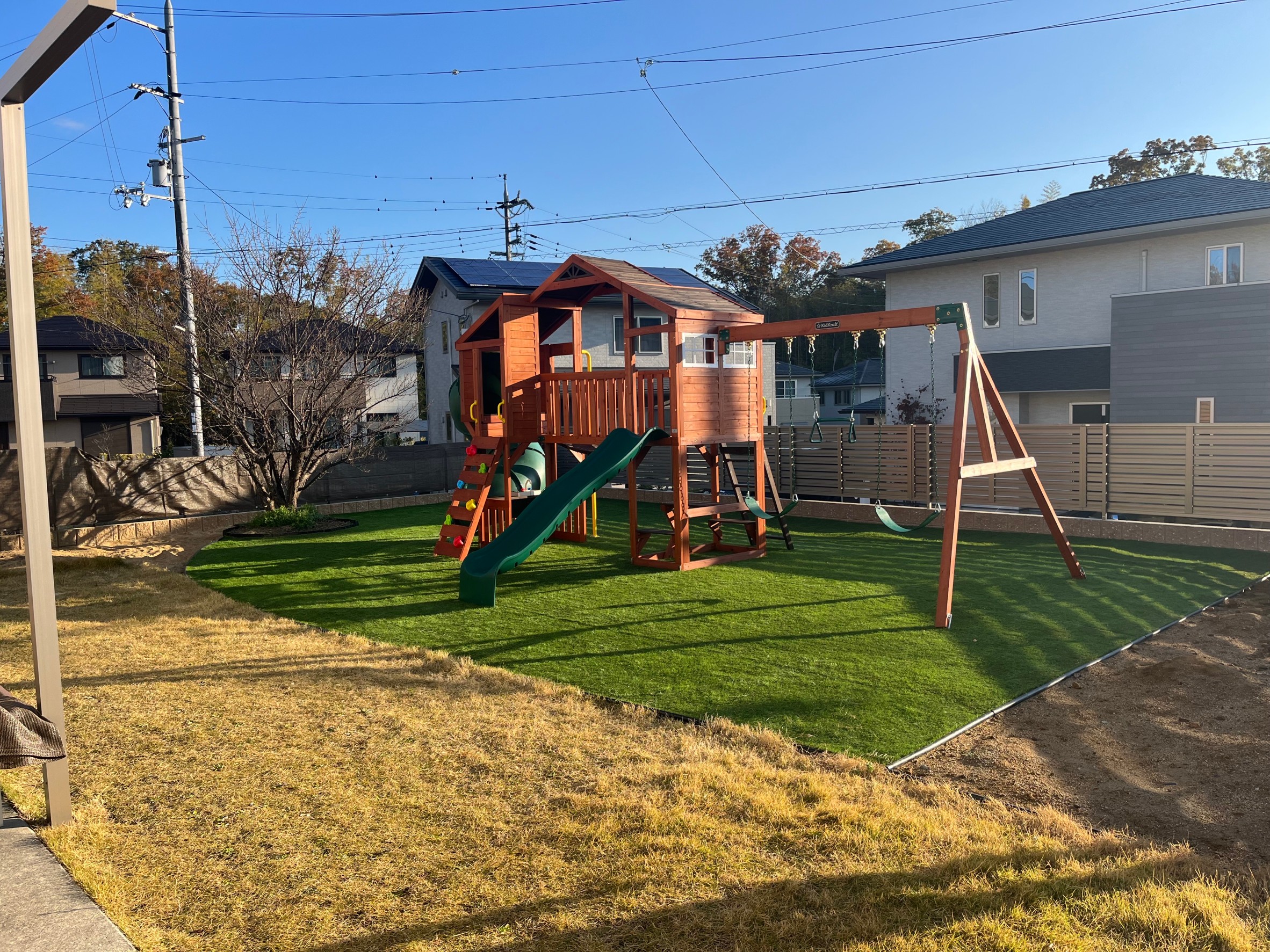 掛川市 Y様邸落ち着いた色のナチュラルな木調フェンスとデッキ・人工芝でローメンテナンスを意識したエクステリア静岡県掛川市エクステリア・外構ガーデンリーフ。