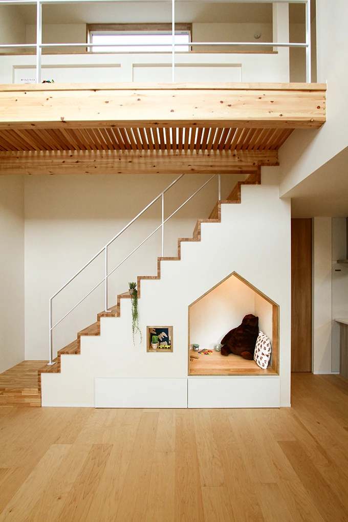 階段下のヌックスペースとした秘密基地のような空間のある家夢創ハウジング。