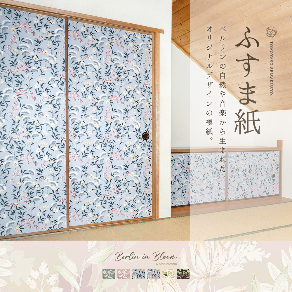 ふすま紙 110×200cm 襖紙 おしゃれなふすま ふすまの張替え 襖張り替え 自分でリメイク かわいい おしゃれ 簡単 枠外さない モダン 北欧洋風 大掃除 BERLIN in Bloom H-N-0DIY+。