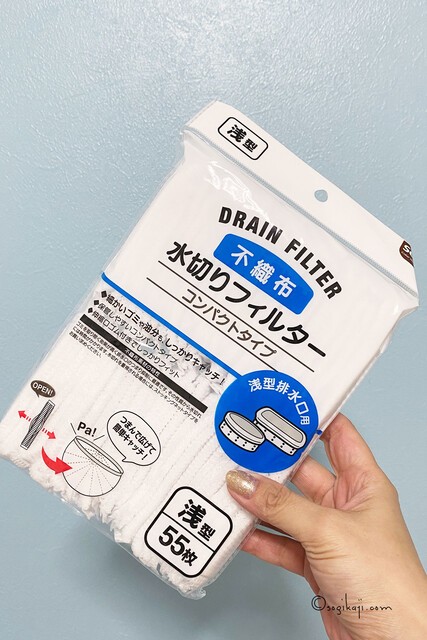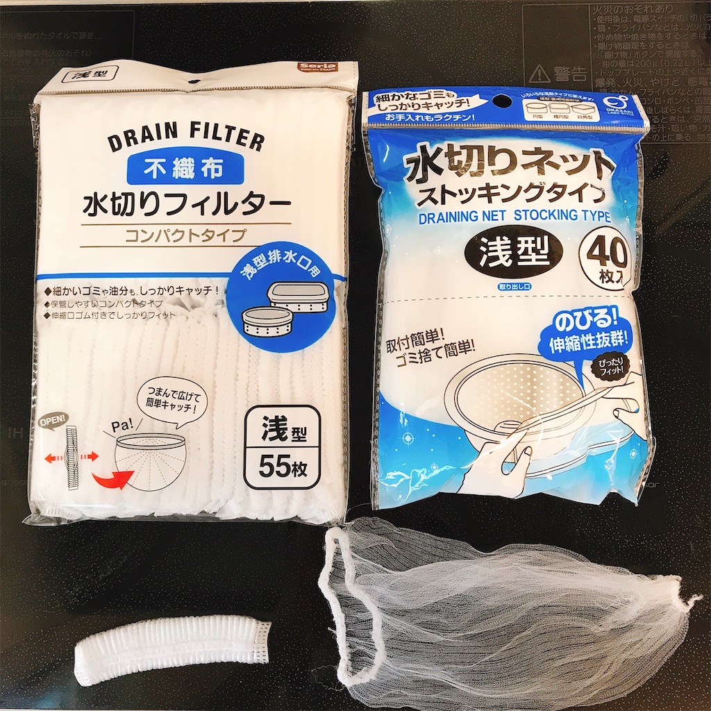 取り出しやすい排水口の水切りネット セリア 不織布の水切りフィルターがすごい!! : Happy Living -削ぎ家事研究室。