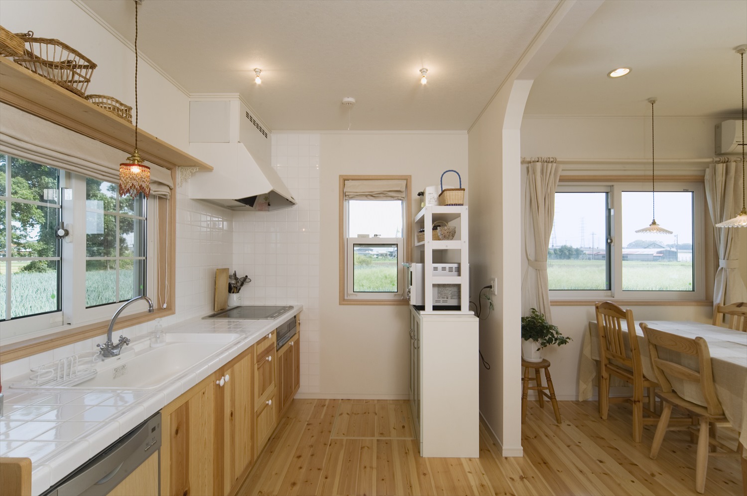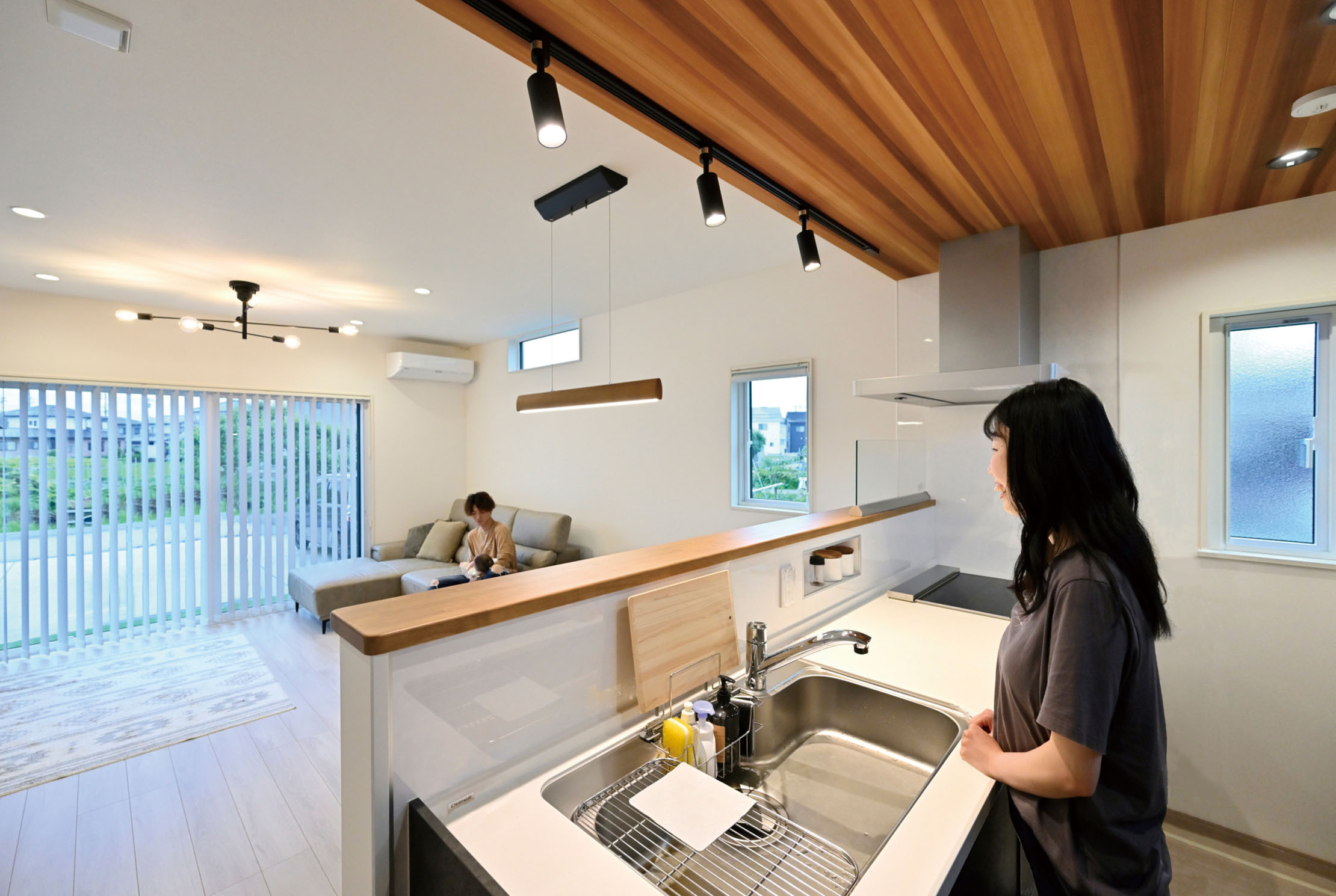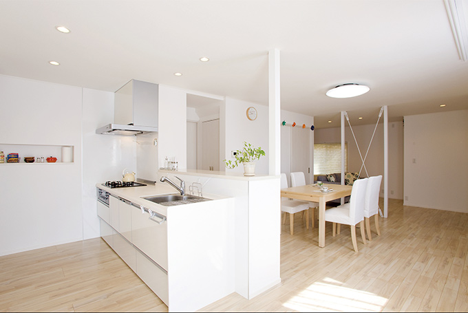 対面キッチンでLDKにいいレイアウトづくり 実例 キッチン間取りで決まるおしゃれ空間不二建設。