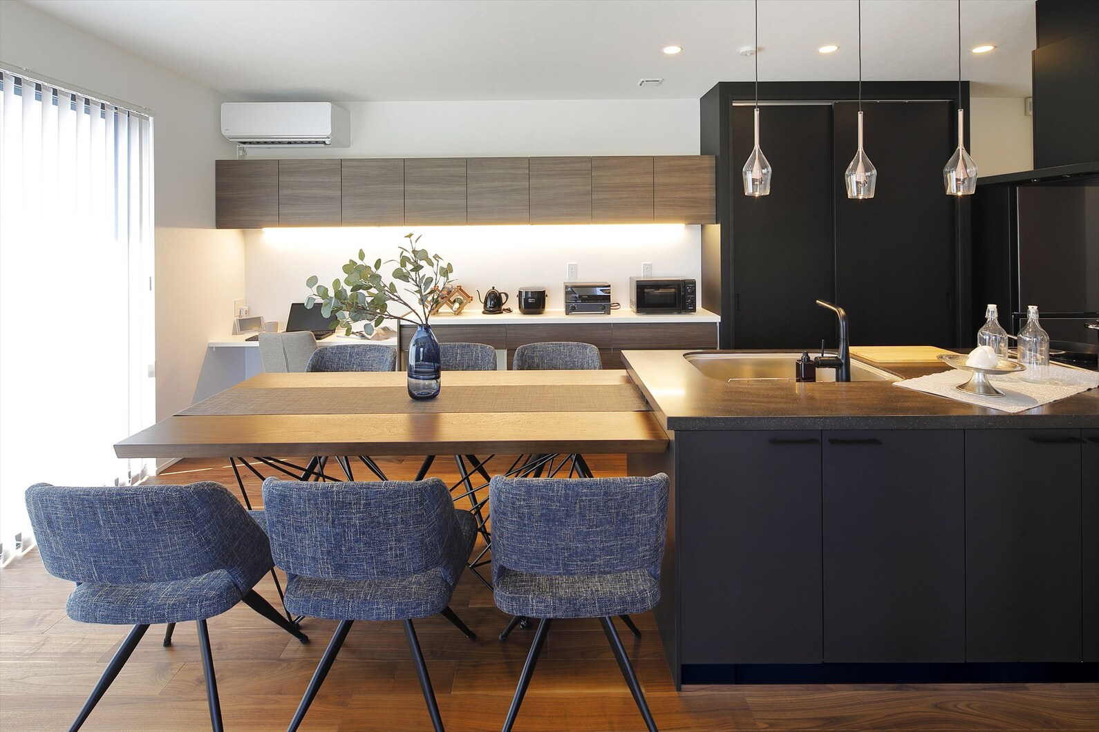 ダイニングキッチンの間取り実例横並びや対面型のレイアウト比較も注文住宅ブルーハウスデザイン・性能・リゾートライフ、愛知、名古屋、豊橋、豊川、岐阜ならお任せください。