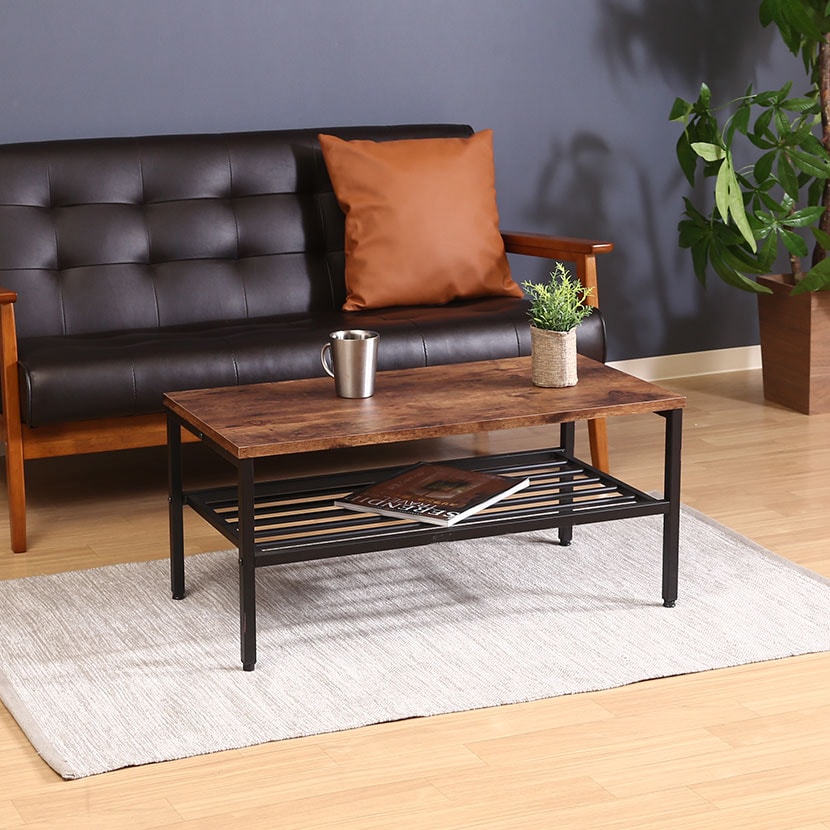 センターテーブル 幅80 ローテーブル 棚付き リビングテーブル スチール 木製 インダストリアル 西海岸 おしゃれ ヴィンテージ風 おしゃれ 新生活。