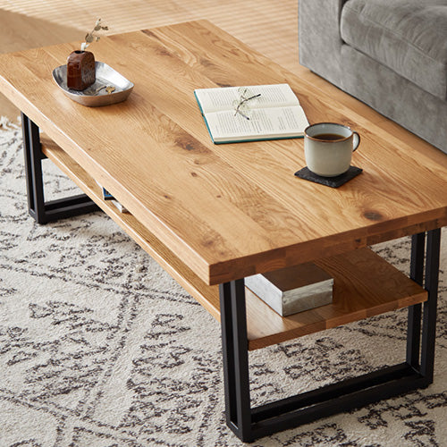 テーブル ローテーブル オーク 幅120 棚付き センターテーブル リビングテーブル カフェ 北欧 西海岸 木製 天然木突板 カフェテーブル –Branchée Beauté。