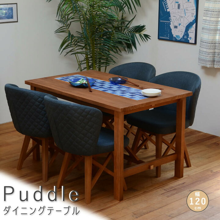 PUDDLE ダイニングテーブル 幅75 PUDT-75 ダイニング リビング テーブル 家具 食卓 西海岸風 カリフォルニアスタイル レトロセラミックタイル タイル クロスバー 青 マリン 爽やか ヴィンテージ ウッド リゾート 天然木 ラッカー塗装 木目調 グラデーション 75幅。