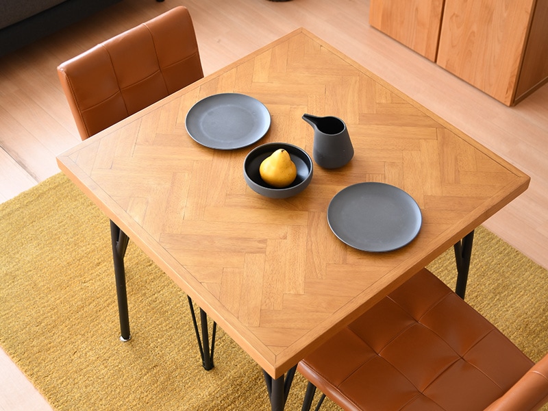 ダイニングテーブル 西海岸 単品 ヘリンボーン 幅75cm 奥行75cm 高さ70cm テーブル 木製 コンパクト 正方形 カフェ風 スチール脚41061店舗,株式会社サン大川市公式オンラインショップ 大川木工まつり常設展株式会社サン,ヘリンボーン,机,つくえ,正方形,2人用。