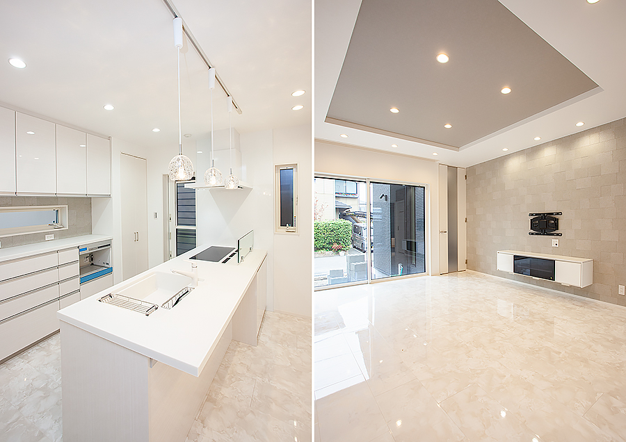 真っ白なPタイルが、艶やかな白を演出するLDK-fevecasa フェブカーサ。
