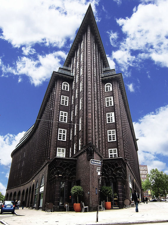 Chilehaus, Entworfen von Fritz Höger, Hamburg, Deutschland 🇩🇪, ChileHouse, Designed by Fritz Höger, Hamburg, Germany, It is a ten-storey, largeangular office building on a site of approximately。