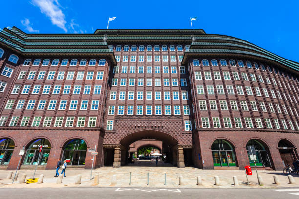 ドイツのハンブルク 1920年代ドイツのレンガ表現主義建築様式の例外的な例であるチリハウス チリハウス —ストック編集用写真©jqnoc 444811422。