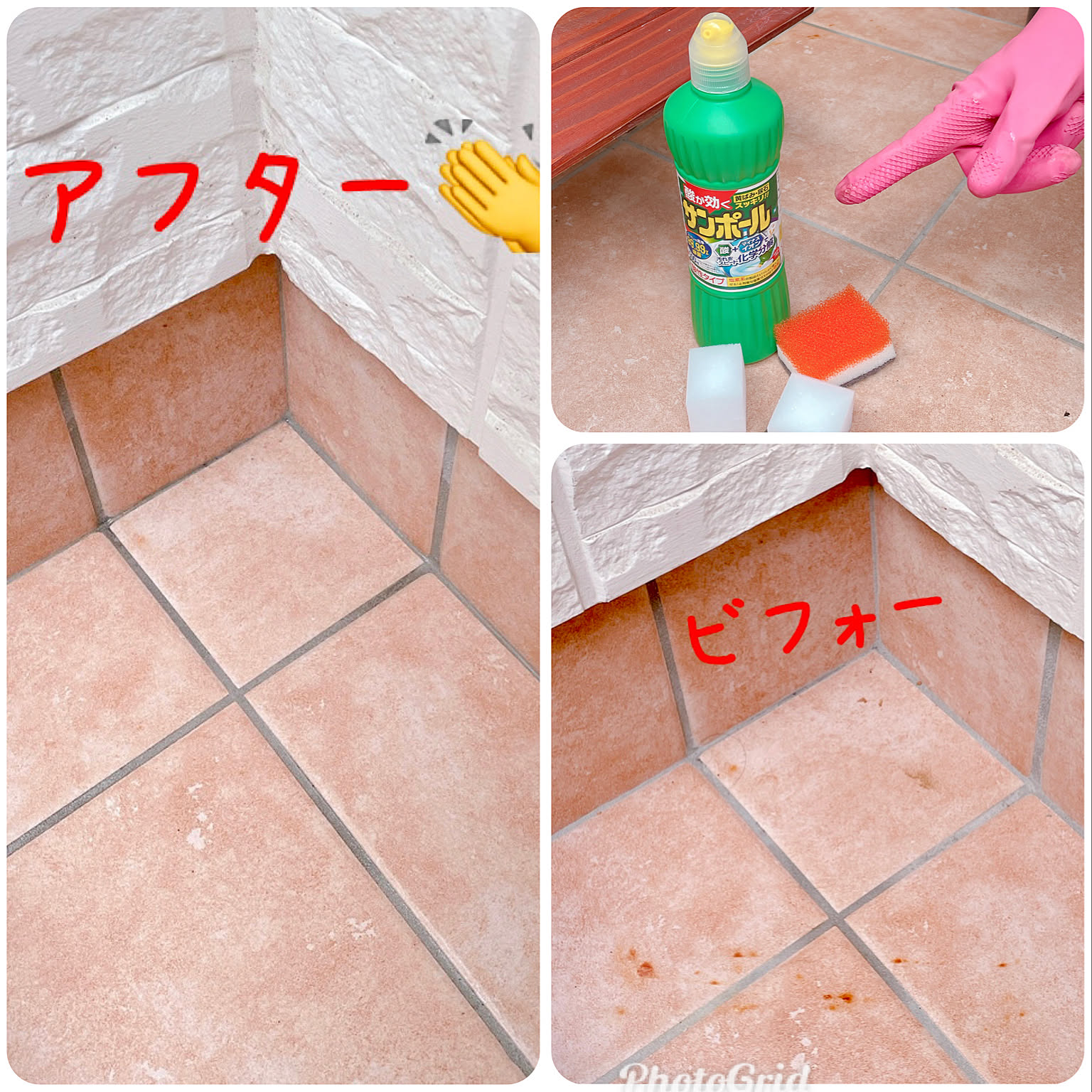 玄関タイル掃除 意外な洗剤で驚きのキレイさに。