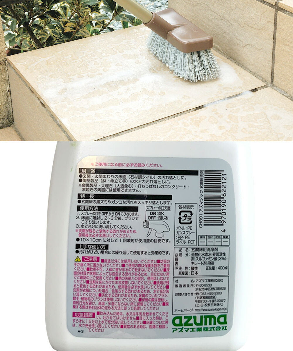 楽天市場 玄関床 洗剤 400ml アズマジック スプレー玄関 タイル 汚れ 落とし 黒ずみ フロア 床 酸性 泡スプレー 漂白 玄関掃除頑固な汚れ 土足 石材調 プロ仕様 よく落ちる 強力 洗浄 掃除 そうじ 清掃 清掃グッズ 清掃道具 清掃用品:。