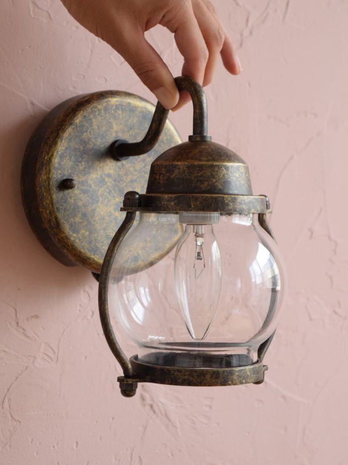 人感センサー付きポーチライト、真鍮製のおしゃれな外灯 アンティーク色電球セットwr-128 照明おしゃれ。