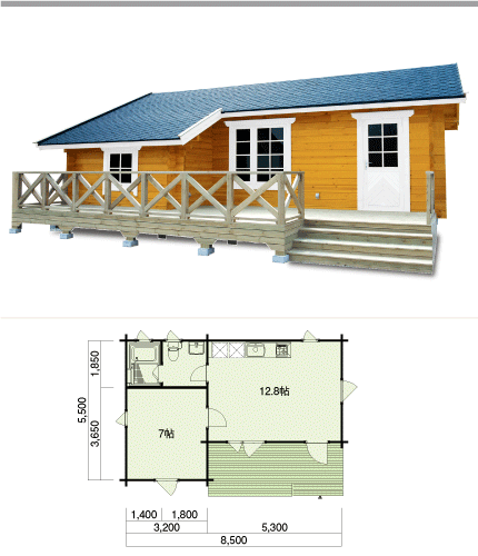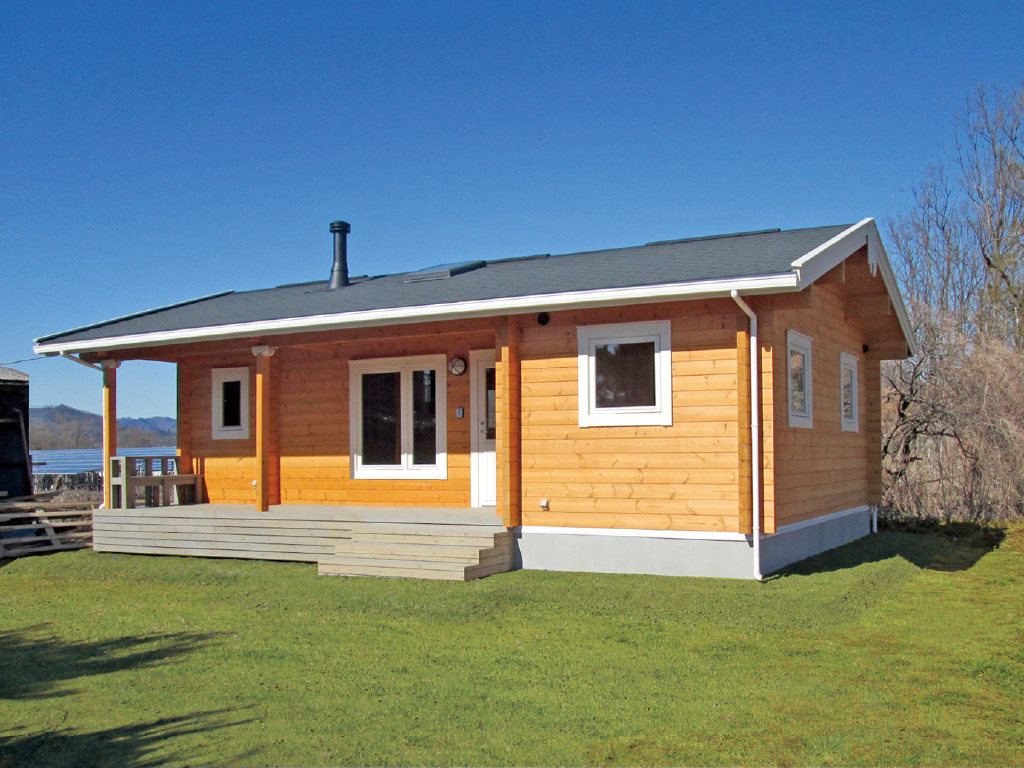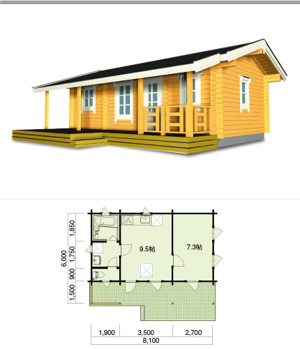 ログキットハウス ハウス4.5坪+デッキ0.8坪S-1154壁厚100mmの国産材ログハウスを自社製造・販売 - 親和木材工業株式会社。
