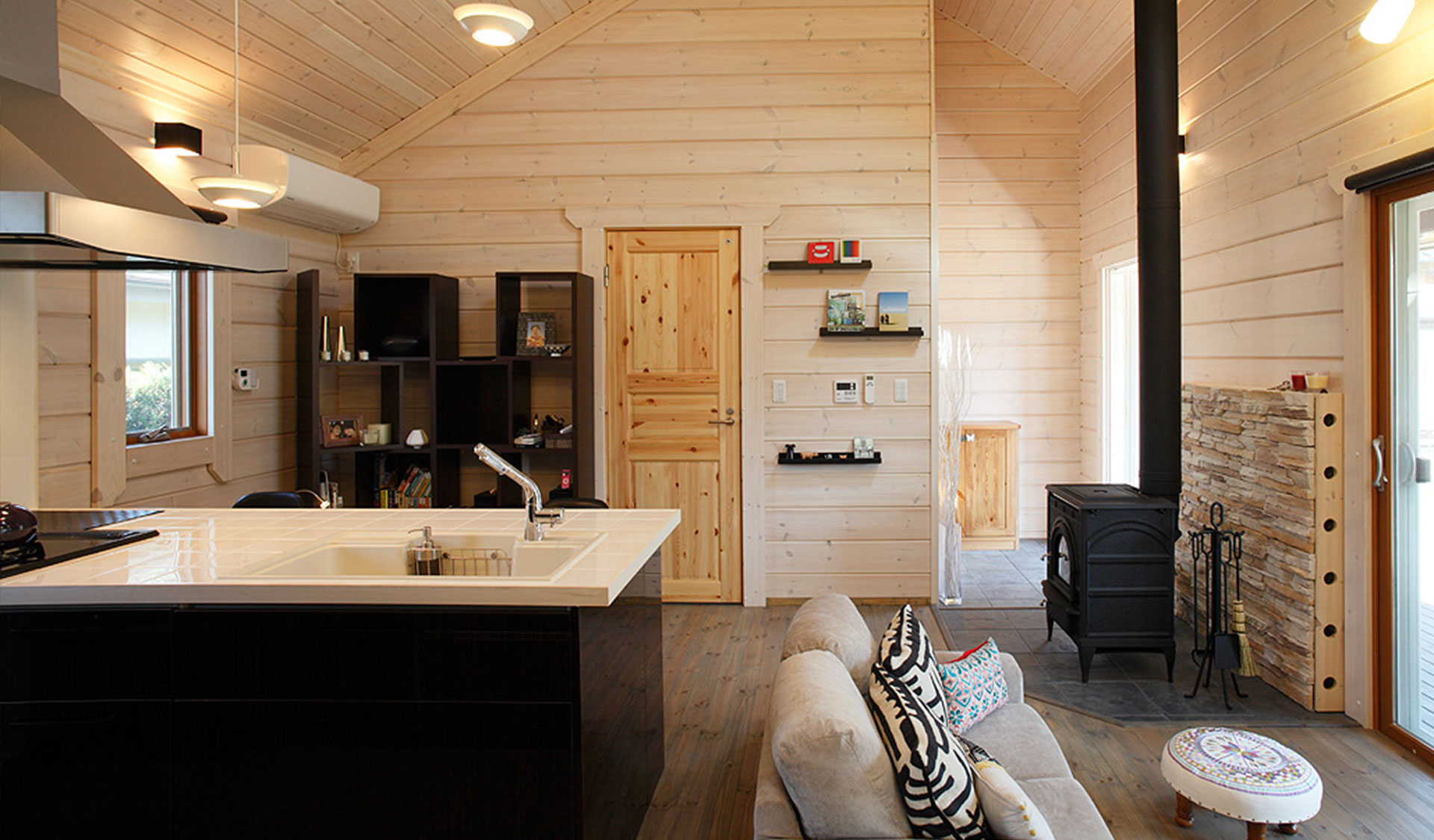ログハウス風デザイン&薪ストーブで憧れを実現。自由なアレンジで生まれた平屋<COVACO>ALLWELL オールウェル 新築・注文住宅・規格住宅 福島県。