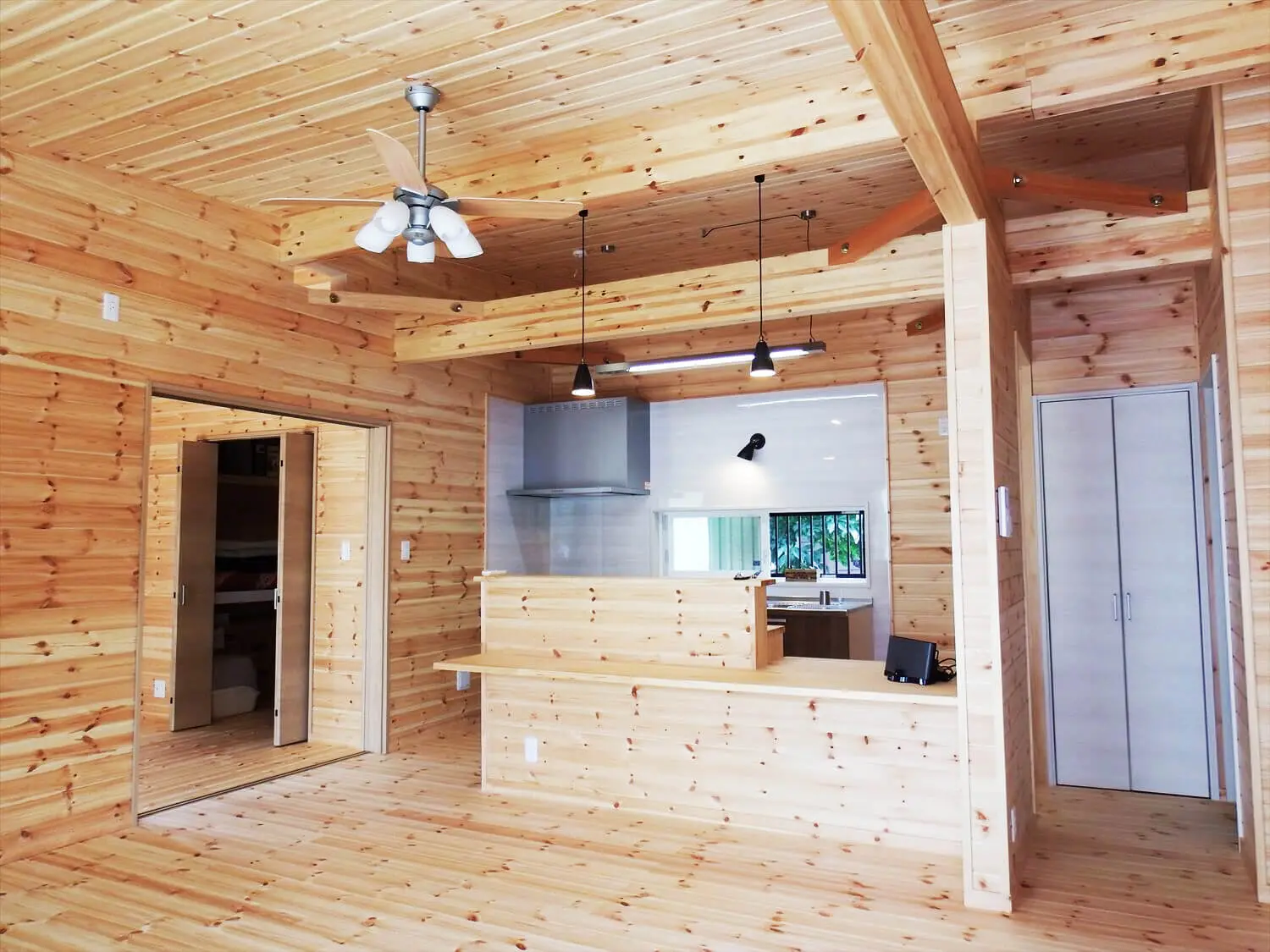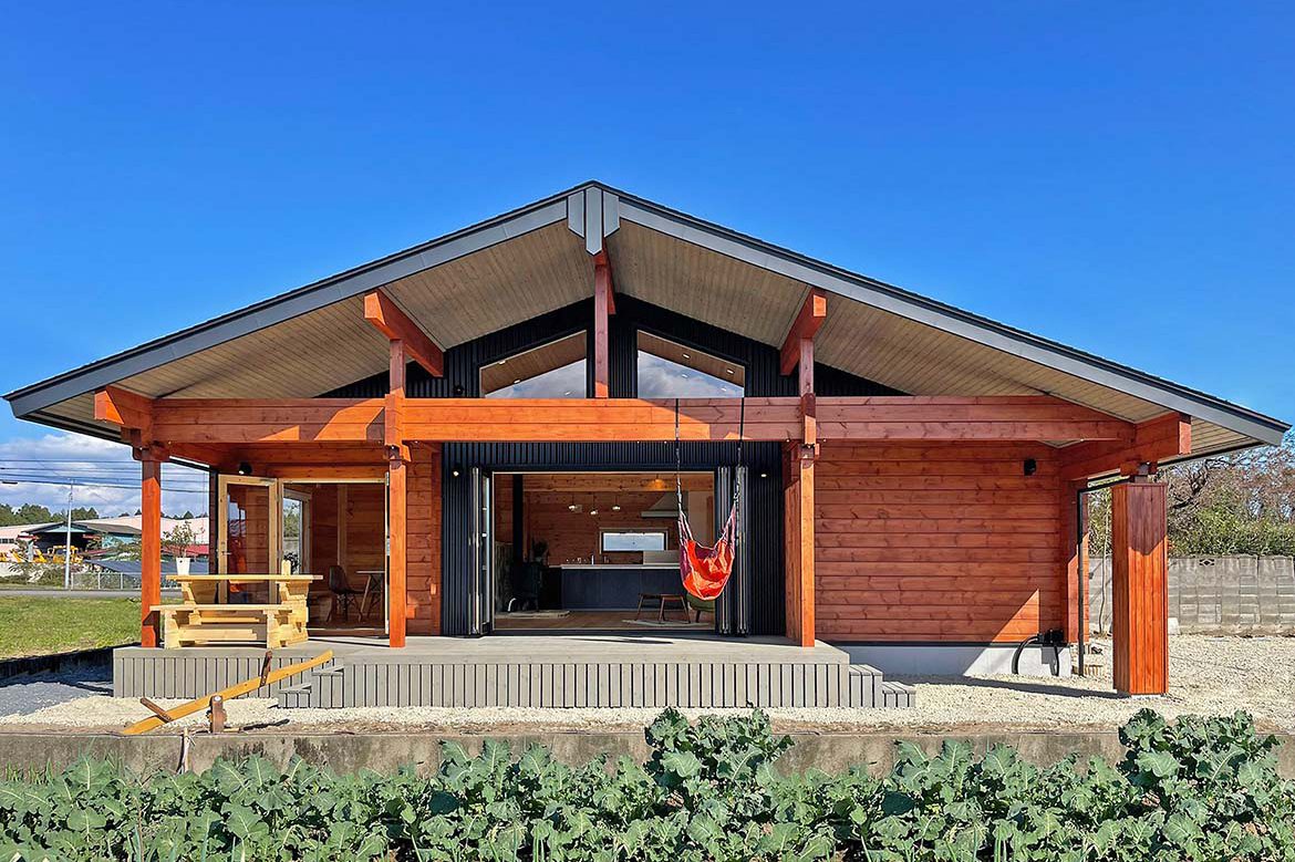 那須の絶景を望むフリープラン平屋ログハウスログハウスのビックボックス。