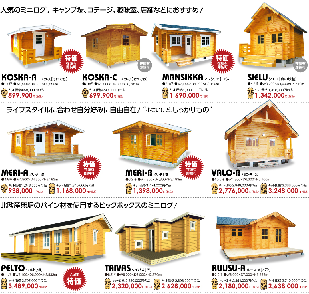 ミニログハウス一覧ビックボックス ミニログハウス専用サイト。