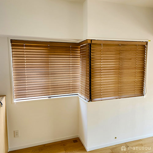 コーナー窓への縦型ブラインド施工事例 -松装公式ブログ カーテン・インテリアのネット通販専門店のスタッフブログ。