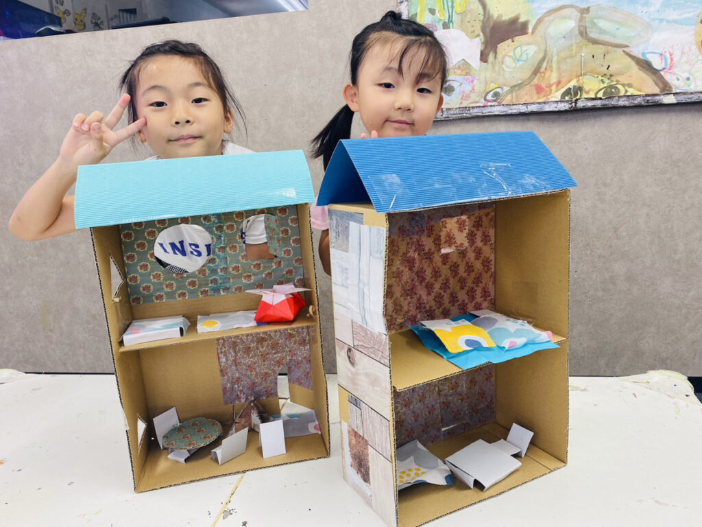 ドールハウスを親子で手作り!ダンボール工作大阪の絵画教室・お絵描き教室モネスク。