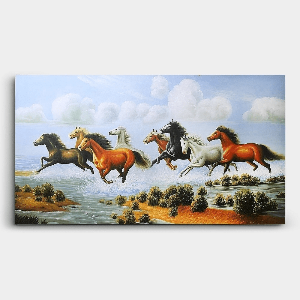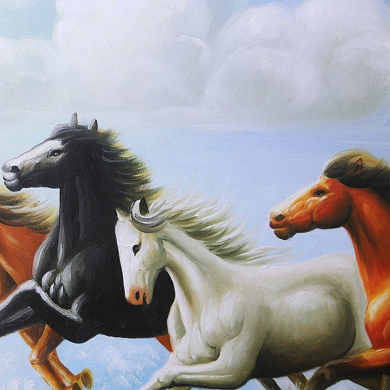 Amazon.co.jp: インテリア開運絵画「金運九頭馬図」玄関 トイレ 居間 寝室 九頭の白馬が疾駆し怒涛の勢いで大金運を運ぶ 金運アップ 風水アート はがきサイズ 吉祥の会 : ホーム&キッチン。