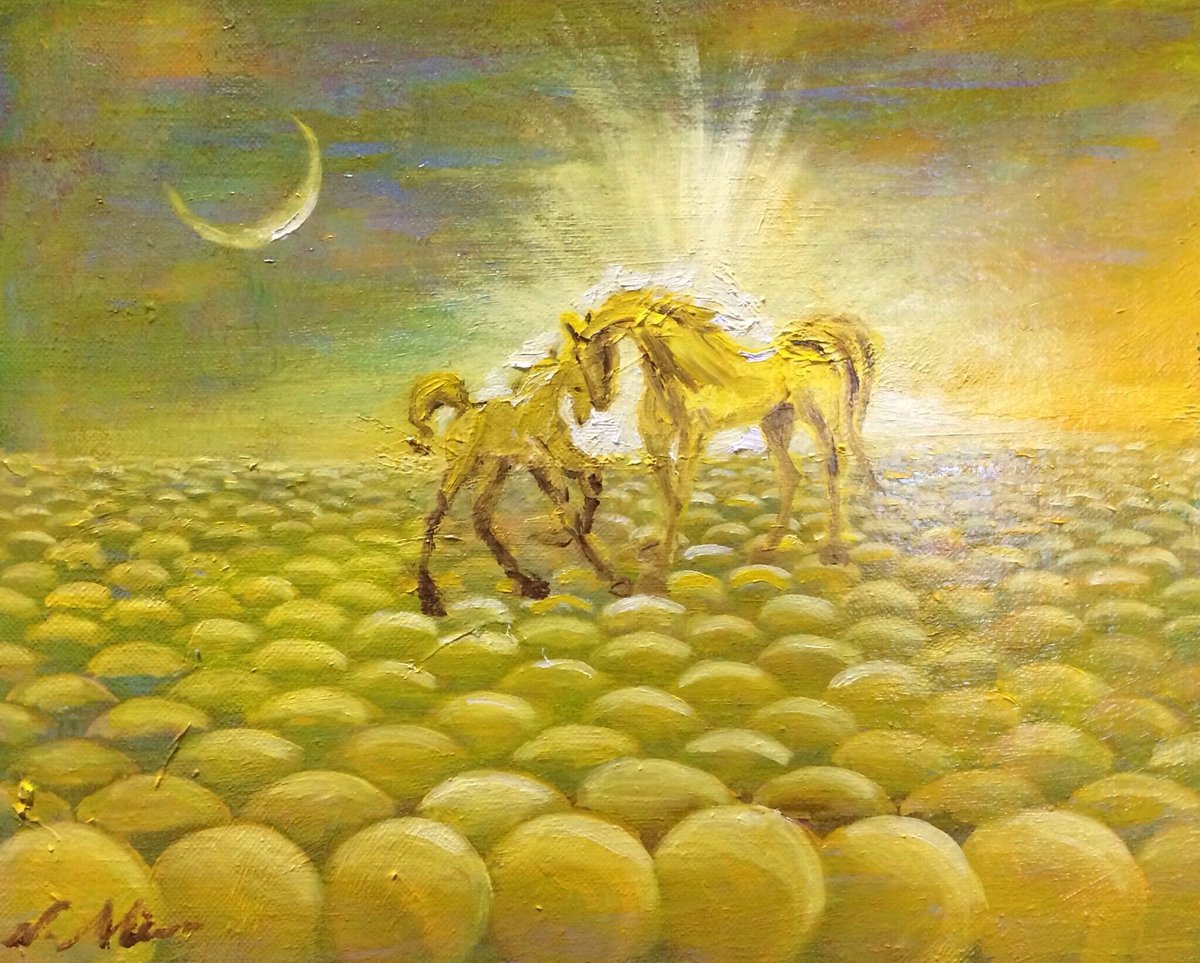 絵画 馬 壁掛け インテリア 版画 風景画 風水 黄色 玄関 おしゃれ 額入り 絵画 光輝く花畑 画家 藤谷壮仁郎 Soujirou Art。