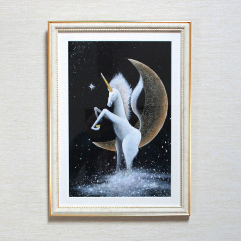 ユニコーン ムーン 絵画 額入り 壁掛け 絵 玄関 馬 ホース 風水 グッズ インテリア アート リビング 風水。