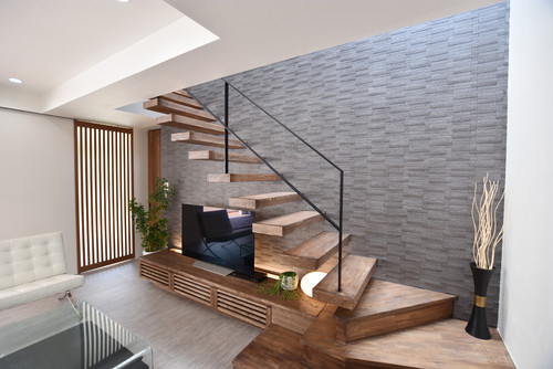 アクセントクロス - モダン - 階段 - 他の地域 - 有限会社 今井建工Houzzハウズ。