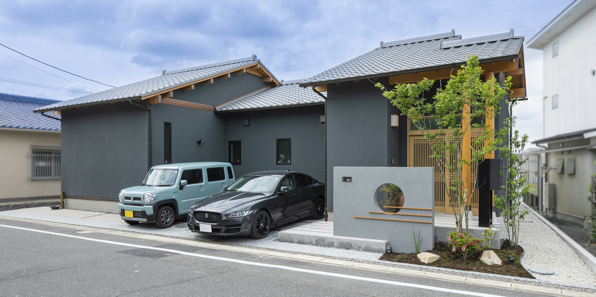 平屋のような佇まいのプライバシー重視のモダンな和風住宅デザインのかっこいい外観 - 事例写真「瓦の家」注文住宅のハウスネットギャラリ。